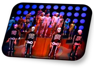 This is meant to be a visual representation of the song; each group of characters represents a different instrument. According to Gondry's notes, the robots represent the singing voice; the physicality and small-minded rapidity of the athletes symbolizes the ascending/descending bass guitar; the femininity of the disco girls represents the high-pitched keyboard; the "itchy" skeletons dance to the guitar line; and the mummies represent the drum machine.