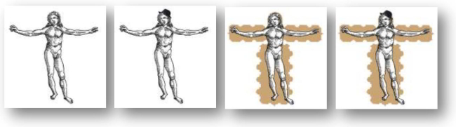 Man kann etwa sagen: Lassen wir den alten Rahmen einmal weg und orientieren wir uns nur am Menschen. Wie würde der vitruvianische Mensch als Sol invictus aussehen und wie als Hipster? Und wie macht sich der vitruvianische Mensch als Hipster mit dem Goldglanz des Sol invictus? Oder orientieren wir uns am gerahmten goldenen Glanz: Was ändert so eine goldene Füllung eigentlich am Erscheinungsbild einer Inszenierung und wird sie durch den Kontrast mit Mode-Accessoires in Frage gestellt oder bestätigt? Und würde uns die Ironisierung stören?